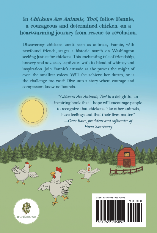 Chickens Are Animals, Too! has garnered praise for its delightful narrative and meaningful message. Gene Baur, president and cofounder of Farm Sanctuary, describes it as “a delightful and inspiring book” that encourages readers to recognize that chickens, like other animals, have feelings and that their lives matter.