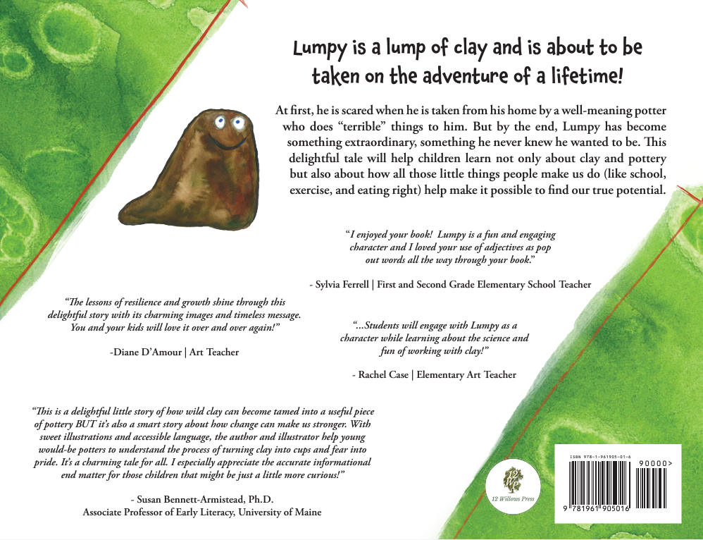 Lumpy’s Gift is a beautifully illustrated children’s picture book that follows Lumpy, a lump of clay, as he’s shaped into a ceramic cup. Along the way, kids learn about pottery-making, personal growth, and embracing change.